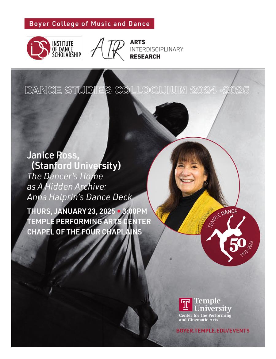 This talk theorizes domestic spaces and objects in a dancer’s home as hidden archives of aesthetic invention. It posits four objects from the mid-century modern home of the dancer Anna Halprin and the Urban Designer Lawrence Halprin’s Northern California residence - stairs, chairs, decks, and windows — as strong influences shaping both Halprins’ movement invention and choreography. Through a close reading of one of these, the large redwood deck on the side of the Halprin property, known internationally as “The Dance Deck,” this talk traces the confluence of nature, landscape, and the body in performance. Designed collaboratively by theater and lighting designer Arch Lauterer, and Lawrence Halprin, this open-air laboratory was where Anna grew the dance works that defined her as a leading contemporary dance artist. The most famous feature of the Halprin property, this platform cantilevering off the hillside below the Halprin home, is where for 70 years thousands of dancers from around the world came to study, perform, and observe. Working in the midst of nature on this dance surface punctured by the trunks of Madrone trees, Halprin and her students stretched dance’s boundaries. The result was a radical rethinking of scale, norms, and gestural repertoires of bodies as performing mediums. The material for this talk is drawn from Janice Ross’s newest book; The Choreography of Environments, (Oxford University Press, Spring 2025).