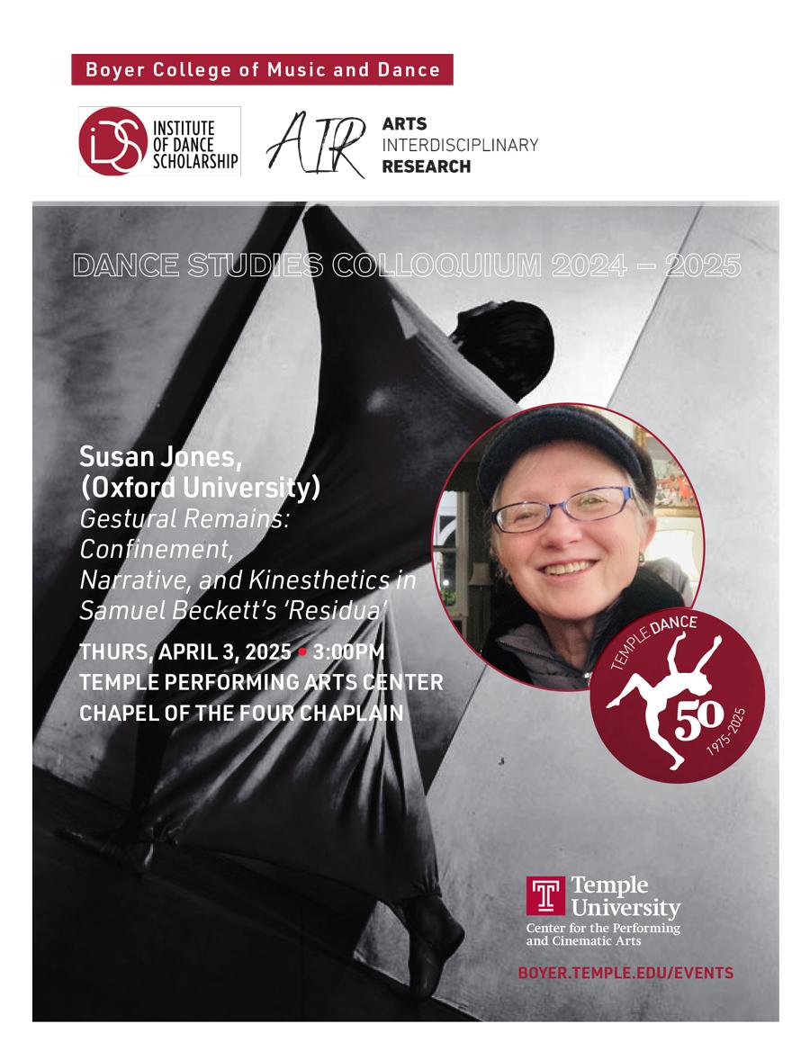 Also, Professor Jones will hold an informal seminar with students on Thursday morning at 11:30am in room 307 of the Dance Department (1700 North Broad Street).