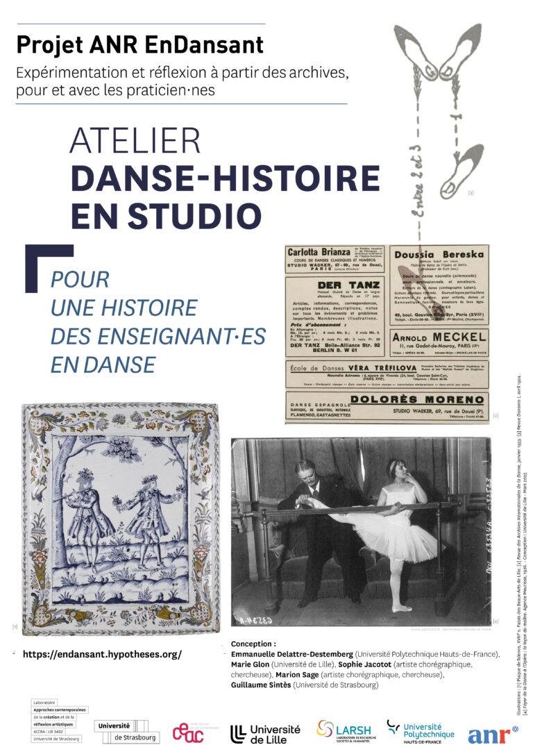 Cet atelier est financé par le projet ANR EnDansant – Pour une histoire des enseignant-es en danse, piloté par Emmanuelle Delattre-Destemberg (université Polytechnique Hauts-de-France), Marie Glon (université de Lille) et Guillaume Sintès (université de Strasbourg). Il s’adresse aux passeur-euses de danses qui souhaitent découvrir les archives de cette activité et qui sont prêt-es à explorer, échanger et partager leurs expériences sur leur pratique de la transmission.
